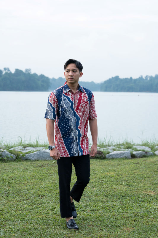 Short Sleeve Textured Batik Shirt- Cerita Samudera